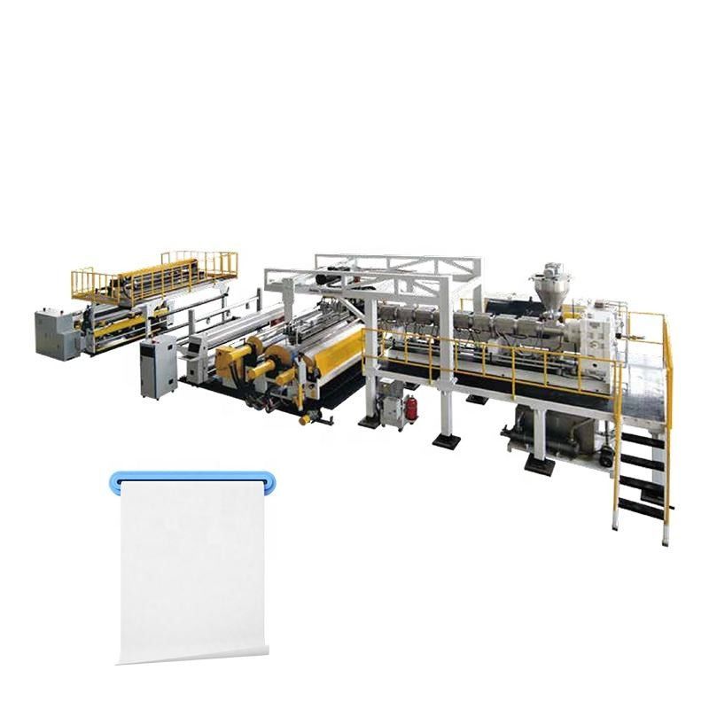 O canal refrigerando especial de calandras mantém a temperatura do uniforme da superfície do calendário. O calendário revestido do silicone peculiar pode remover o esforço do filme de EVA/POE eficazmente de modo que abaixe a taxa do encolhimento significativamente. a bomba de engrenagem Alemão-feita assegura o derretimento que participa em - morra com quantidade constante e pressão estável. O fim-laço pode manter o estábulo do sistema correr inteligentemente. O equipamento adota o projeto do único-parafuso, equipado com o peso e o sistema de tratamento por lotes, o controle proporcional central, o alarme da fonte automática na falta do material, e os produtos são refrigerados pela água macia. O produto claro, partículas menos finas, equipadas com o forno do tratamento térmico, remove eficazmente o esforço, equipado com o dispositivo em linha do calibre de espessura, dispositivo do aparamento, enrolando usando o controle de tensão constante do método do enrolamento da fricção, aceleração da produção e a retardação pode ser controle de relação sincronizado, a velocidade pode alcançar 10mmin_20mmin